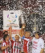 Boca Juniors won the 2001 edition after, once again, defeating Palmeiras in the semifinals and Cruz Azul in the final series to successfully defend the trophy. After Cruz Azul won 1–0 in the second leg at La Bombonera, a penalty shoot-out was needed to define a champion. Boca Juniors won 3–1 after the Mexican team missed three penalties.[62][63] Cruz Azul became the first ever Mexican club to reach the final and win a final leg after great performances against River Plate (3–0) and Rosario Central (5–2 on aggregate). The team had notable players such as forwards José Saturnino Cardozo and Francisco Palencia,[64] and their performance in the competition was praised by the Argentine media.[65]