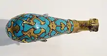 Starting in 139 BCE, the Han diplomat Zhang Qian traveled west in an unsuccessful attempt to secure an alliance with the Da Yuezhi (who were evicted from Gansu by the Xiongnu in 177 BCE); however, Zhang's travels revealed entire countries which the Chinese were unaware of, the remnants of the conquests of Alexander the Great (r. 336–323 BCE).[107] When Zhang returned to China in 125 BCE, he reported on his visits to Dayuan (Fergana), Kangju (Sogdiana), and Daxia (Bactria, formerly the Greco-Bactrian Kingdom which was subjugated by the Da Yuezhi).[108] Zhang described Dayuan and Daxia as agricultural and urban countries like China, and although he did not venture there, described Shendu (the Indus River valley of northern India) and Anxi (Arsacid territories) further west.[109] Envoys sent to these states returned with foreign delegations and lucrative trade caravans;[110] yet even before this, Zhang noted that these countries were importing Chinese silk.[111] After interrogating merchants, Zhang also discovered a southwestern trade route leading through Burma and on to India.[112] The earliest known Roman glassware found in China (but manufactured in the Roman Empire) is a glass bowl found in a Guangzhou tomb dating to the early 1st century BCE and perhaps came from a maritime route passing through the South China Sea.[106] Likewise, imported Chinese silk attire became popular in the Roman Republic by the time of Julius Caesar (100–44 BCE).[113]