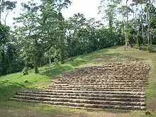 During the Middle Preclassic Period, small villages began to grow to form cities.[13] By 500 BC these cities possessed large temple structures decorated with stucco masks representing gods.[14] Nakbe in the Petén Department of Guatemala is the earliest well-documented city in the Maya lowlands, where large structures have been dated to around 750 BC.[13] Nakbe already featured the monumental masonry architecture, sculpted monuments and causeways that characterised later cities in the Maya lowlands. The northern lowlands of Yucatán were widely settled by the Middle Preclassic.[16] By approximately 400 BC, near the end of the Middle Preclassic period, early Maya rulers were raising stelae that celebrated their achievements and validated their right to rule.[17]