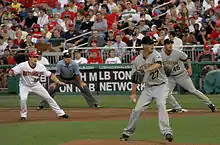 The 2011 season had a promising start, as the Pirates were above .500 at the All-Star Break for the first time since 1992. The Pirates also sent three players to the 2011 Major League Baseball All-Star Game with the selections of starting pitcher Kevin Correia, closer Joel Hanrahan and center fielder Andrew McCutchen.[43] On July 15, and again on July 18, the Pirates moved into first place of the NL Central. This marked the first two times that the Pirates were in first place this late in the season since 1997.[44] The last day they were in first was July 25. The Bucs split four games with the Braves on July 25 to July 28. After this they lost 10 games in a row and never recovered. Starting in late July rumblings of "America's Team" began to surface, with ESPN television picking up two of their games for their nightly baseball telecast. The Pirates acquired two former all-stars through the trade market during the Trade Deadline on July 31: First baseman Derrek Lee from the Orioles and outfielder Ryan Ludwick from the Padres.[45] On July 26, a questionable call at home plate led to a 19-inning loss against the Atlanta Braves. The Pirates then won only one game from that point to August 8, including a season-high 10-game losing streak in that span. Despite a promising season, with a loss to the St. Louis Cardinals on September 14, 2011, the team lost its 82nd game of the season, ensuring a 19-year losing season streak.