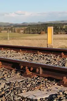 Much of the work of maintaining the track was at the joints, especially as the stiff rails became dipped, and the joint sleepers took a hammering. Pre-war experiments with long welded rail lengths were built upon, and in the years from 1960 long rail lengths were installed, at first on hardwood sleepers but soon on concrete sleepers. For example, the first long welded rail (almost 1 mi (1.6 km)) on the UK's East Coast Main Line was laid in 1957, just south of Carlton-on-Trent, resting on rubber pads to resist rail creep.[24] In this pioneering stage, some catastrophic mistakes in detailed design were made, but from about 1968 continuous welded rail became a reliable standard for universal installation on main and secondary routes. The form adopted used pre-stressed concrete sleepers and a 110A rail section—a slight improvement on the 109 rails previously used—the A was to distinguish it from the British Standard 110 lb/yd rail section, which was unsuitable. Rail fastenings eventually converged onto a proprietary spring clip made by the Pandrol company which was the exclusive form of fastening in Britain for about 30 years.