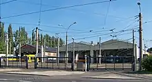The Probstheida Depot was closed to tramcars from 1 August 1973 and converted to a motorbus depot. Motorbuses were based here from 15 April 1977. However, the three-track tram terminal, removed in 1988 was replaced by a single track in 2005.