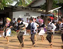 The clan (xeem; 姓) remains a dominant organizing force in Hmong society. There are about eighteen Hmong clans that are known in Laos and Thailand.[3] Clan membership is inherited upon birth or occasionally through adoption. All children are members of the father’s clan, through which they will trace their ancestors. Women become members of their husband's family upon marriage but will retain their clan name of their father. Members of the same clan consider each other to be kwv tij, translated as "brothers", "siblings," and they are expected to offer one another mutual support. The term kwv tij is regarded as one's father's family or in the case of women who are married it refers to their in-laws. A related term neej tsa is the wife family after marriage. However, she regards her birth family to be her kwv tij until she is married. Also, many clans even consider each last name as kwv tij Example: Khang, Kue, and Kong are kwv tij because they share a history of helping each other and respect for each other.[4] Respected clan leaders are expected to take responsibility for conflict negotiation and occasionally the maintenance of religious rituals. Members of a clan who share the same ritual practices may identify as a group on the sub-clan level.