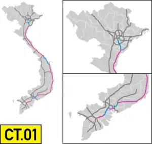 The Ho Chi Minh City–Trung Luong Expressway (part of the North–South Expressway, labelled as CT.01), is a 61.9-kilometre-long (38.5 mi) highway in Vietnam. This six-lane expressway opened on February 3, 2010, connecting Ho Chi Minh City with Tiền Giang Province and the rest of Mekong Delta. The expressway starts at Tan Tao Interchange, Bình Chánh District, Ho Chi Minh City and ends at Than Cuu Nghia Intersection, Châu Thành District, Tiền Giang.There are four entrances to the expressway.[1] The fastest allowed speed is 120 kilometres per hour (75 mph) and the slowest is 60 kilometres per hour (37 mph).