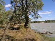 The Hodgkinson Tree is a mature Coolibah tree (Eucalyptus microtheca) on the northeastern bank of Lake Mary, in the Rocklands Station homestead paddock north of Camooweal. It leans over the lake, which is part of the Georgina River system.[1]