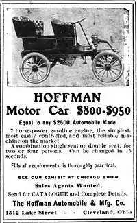 The Hoffman Automobile and Manufacturing Company was founded in 1900 by French immigrant Louis Hoffman and based in Cleveland, Ohio. The first cars went on sale in 1902. The original versions ran on steam, but the business eventually accepted the internal combustion engine. Hoffman departed the company in 1903.