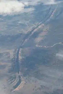 The Grand Hogback is a 70-mile long (110 km) ridge located in western Colorado.[7] It marks part of the boundary between the Colorado Plateau to the west and the Southern Rocky Mountains to the east.[8]