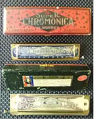 In addition to diatonic harmonicas Hohner also produces other types such as chromatic[32] and tremolo harmonicas.[33]