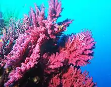 Holaxonia is a suborder of soft corals, a member of the phylum Cnidaria.[1] Members of this suborder are sometimes known as gorgonians and include the sea blades, the sea fans, the sea rods and the sea whips. These soft corals are colonial, sessile organisms and are generally tree-like in structure. They do not have a hard skeleton composed of calcium carbonate but have a firm but pliable, central axial skeleton composed of a fibrous protein called gorgonin embedded in a tissue matrix, the coenenchyme. In some genera this is permeated with a calcareous substance in the form of fused spicules. Members of this suborder are characterized by having an unspiculated axis and often a soft, chambered central core.[2] The polyps have eight-fold symmetry and in many species, especially in the families Gorgoniidae and Plexauridae, contain symbiotic photosynthetic algae called zooxanthellae. These soft corals are popular in salt water aquaria.[3][4]