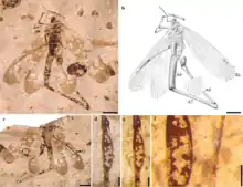 Holcorpidae is an extinct family of scorpionfies. It contains two genera, Conicholcorpa which is known from the Middle Jurassic Daohugou beds of Inner Mongolia, China,[1] and Holcorpa, known from the Eocene of North America, including the McAbee Fossil Beds of British Columbia, and the Florissant Formation of Colorado.[2] Members of this family are distinguished by their unusually long male genitalia, as well as characteristics of their wing venation.[1] Both Miriholcorpa and Fortiholcorpa from the Middle Jurassic of China also have affinities to this family, but the incompleteness of their remains and differences from known holcorpids make their placement uncertain.[1]