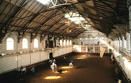 The Hollandsche Manege in Amsterdam is the oldest riding school in the Netherlands, dating back to 1744.[1] The current building, inspired by the Spanish Riding School in Vienna, was constructed in 1882. The building has been declared a rijksmonument (national monument).