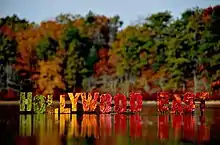Hollywood East is a term for the multiple efforts to build film industry agglomerations on the East Coast of the United States. Recently, the term has been applied to the growing film industry in New England, particularly in Massachusetts[1] and Connecticut,[2] that served as home to the production of over 140 major motion pictures and television series between 2000 and 2013.[3] It is a reference to Hollywood, California, the center of the American film industry, located on the west coast of the United States. The term as used in New England was popularized in the press in 2007 as film and television productions migrated to the east coast to take advantage of the region's scenery, culture, character, and tax incentives put in place by several state governments.[4][5][6]
