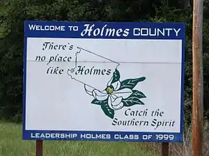 Holmes County is a county in the U.S. state of Mississippi; its western border is formed by the Yazoo River and the eastern border by the Big Black River. The western part of the county is within the Yazoo-Mississippi Delta. As of the 2010 census, the population was 19,198.[1] Its county seat is Lexington.[2] The county is named in honor of David Holmes, territorial governor and the first governor of the state of Mississippi and later United States Senator for Mississippi.[3] A favorite son, Edmond Favor Noel, was an attorney and state politician, elected as governor of Mississippi, serving from 1908 to 1912.