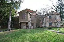 Holt House is one of the few remaining "suburban villas" in Washington, D.C, a design concept by the 16th-century Italian architect, Andrea Palladio. As with Holt House, many designs modeled after Palladio's consist of five parts: a central or main block, flanked by a pair of symmetrical wings, connected to the main block by narrower hyphens and end pavilions or wings.