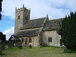 The older parts of the church are constructed in stone rubble, and the newer parts in dressed sandstone. The porch is timber-framed on stone, and the roofs are in stone flags. The plan of the church consists of a two-bay nave, north and south aisles, a south porch, a north organ chamber, a chancel with a north vestry, and a west tower. The tower is in three stages with an embattled parapet with pinnacles, a saddleback roof, and a weathervane in the form of a cockerel. On the south and west sides of the tower are round-headed windows. The louvred bell openings are in pairs and are round-headed. On the side of the south aisle is a gabled porch, with two two-light square-headed windows to the east of it. The east window of the aisle has three lights, under a lintel consisting of a re-used grave slab carved with a wheelcross. On the south side of the chancel is a round-arched priest's door between pairs of lancet windows. On the side of the north aisle are two three-light square-headed windows and the organ chamber. The vestry has a north three-light window and two lancets on the east side. The east window in the chancel has five lights under a pointed arch. At the west end of the south aisle are fragments of an early sculpture. On the gable at the east end of the nave is a finial consisting of a wheelcross.[2]