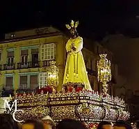 - Servite Order (Ordén de Servitas). It has the privilege of closing the processions of Good Friday.[40] The image of the Virgin of Sorrows, a work of Fernando Ortiz of the 18th century, is carried on the smallest throne of Holy Week. All street lights are turned off from the streets where the procession goes.