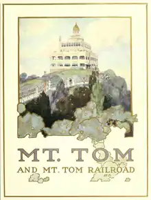 The Mount Tom Railroad, also known as the Mount Tom Railway, was a funicular mountain railway on the northeast slope of Mount Tom in Holyoke, Massachusetts which was operated by the Holyoke Street Railway from 1897 until 1938. Built in 1897, the railway quickly gained national fame when it was visited by President William McKinley who remarked upon the beauty of the mountainside. It was closely identified with the Summit Houses which adorned the mountaintop with the most ornate first two designed by local architect James A. Clough.[54][55][56] At the foot of the railway sat Mountain Park, which connected the cable railway with the Holyoke Street Railway system.