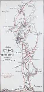 {{cite news}}: Missing or empty|title=(help) - Young, Robert A. (January 1985). "The Mount Tom Electric Railway at Holyoke, 1900-1915". Historic Journal of Western Massachusetts. Westfield, Mass.: 48–51.