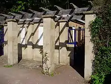 The pinnacle was formerly known locally as Gibraltar, and the ground around here was the site of lime kilns which were worked by the fishermen.[3] In 1905, the town council laid out a public garden, named somewhat loosely The Holywell Retreat, on the site of a disused chalk pit known as The Gore some 400 metres to the northeast of the Holywell fishing settlement. A tea chalet was later built in the garden and the area above was redesigned in the Italianate style after World War I to provide work for the unemployed.[3] The Council later erected beach chalets above the lower promenade. In 1935, one of the chalets was set aside for the use of King George V and Queen Mary during their visit to the town.[4] More chalets were constructed in the 1950s; as of 2009 there were 69 brick-built chalets available for annual rent.[5]