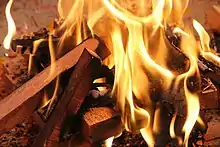 A homa is also called yajna in Hinduism, sometimes for larger public fire rituals, or jajnavidhana or goma in Buddhism.[3][7] In modern times, a homa tends to be a private ritual around a symbolic fire, such as those observed at a wedding.[8]