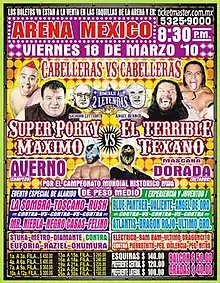 Since 1996 the Mexican wrestling company Consejo Mundial de Lucha Libre (Spanish for "World Wrestling Council"; CMLL) has held a show in March each year to commemorate the passing of CMLL founder Salvador Lutteroth who died in March 1987.[3] For the first three years the show paid homage to Lutteroth himself, from 1999 through 2004 the show paid homage to Lutteroth and El Santo, Mexico's most famous wrestler ever[4] and from 2005 forward the show has paid homage to Lutteroth and a different leyenda ("Legend") each year, celebrating the career and accomplishments of past CMLL stars. Originally billed as Homenaje a Salvador Lutteroth, it has been held under the Homenaje a Dos Leyendas ("Homage to two legends") since 1999 and is the only show outside of CMLL's Anniversary shows that CMLL has presented every year since its inception. All Homenaje a Dos Leyendas shows have been held in Arena México in Mexico City, Mexico which is CMLL's main venue, its "home".[5] Traditionally CMLL holds their major events on Friday Nights, which means the Homenaje a Dos Leyendas shows replace their regularly scheduled Super Viernes show.[5] The 2011 show was the 16th overall Homenaje a Dos Leyendas show.