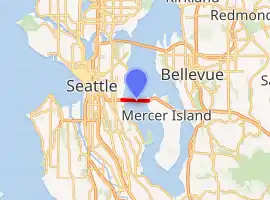 ![]() The two spans of the Homer M. Hadley Memorial Bridge (left) and the Lacey V. Murrow Memorial Bridge (right) in 2016, looking east toward Mercer Island | |