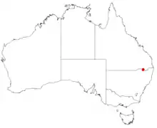 Currently known from a single population in Dthinna Dthinnawan Nature Reserve (formerly Bebo State Forest)~20km north-north east of Yetman New South Wales. This species grows in deep sandy soils over sandstone.[4]