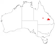 Restricted to area between Rolleston, Theodore and Taroom in central Queensland. Grows usually in rocky woodland on shallow sandy soils.[3]