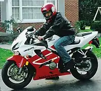 Honda's previous 600-class sport bike, the CBR600F4i, was considered a balance of practicality and performance, as capable as other Supersport-racing 600s, but a more docile and comfortable street bike relative to the competing Kawasaki Ninja ZX-6R, Suzuki GSX-R600, and Yamaha YZF-R6.[1][2] When introduced in 1999, the CBR600F "fought off racier contenders on the track while still managing to be a more practical streetbike", as described by Motorcyclist, "one golf club that acts like a whole bag."[3] With the successor 2003 CBR600RR, Honda shifted to a more aggressive, less compromising strategy in the "churning dogfight that was the middleweight class at the time",[1][4] Honda's CBR-RR Project Leader Hiroyuki Ito said, "We developed the RR in a completely different way from any model in the past. In the past Honda has always developed a roadbike, then modified it for racing. But with the RR, we first built a prototype racer, then gave it to the production department."[5][6] Rotating an aging model down to the next tier of a product line as it is overshadowed by a model with the latest technology is common practice among sport bike manufacturers including Buell, Ducati, Honda, Kawasaki, Suzuki, Triumph, and Yamaha.[7]