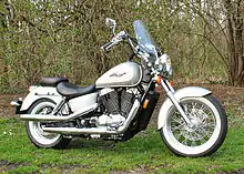 The Honda Shadow refers to a family of cruiser-type motorcycles made by Honda since 1983. The Shadow line features motorcycles with a liquid-cooled 45 or 52-degree V-twin engine ranging from 125 to 1,100 cc engine displacement. The 250 cc Honda Rebel is associated with the Shadow line in certain markets.