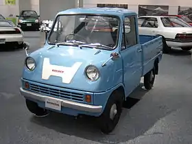 The T360 was produced as a conventional rear wheel drive pickup truck, a flatbed (the T360F), flatbed with folding sides (the T360H), and as a covered van (the T360V). There was also a version of the T360 called the "Snow Crawler", equipped with tracked propulsion units at the rear. Due to its expense, the Snow Crawler remained a rarity in spite of its usefulness in certain parts of northern Japan. The T500 came either with a conventional pickup body (T500), or with the folding side flatbed, this time with the "F" suffix; called the T500F.[3]