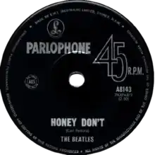 "Honey Don't" is a song written by Carl Perkins, originally released on January 1, 1956[2] as the B-side of the "Blue Suede Shoes"[1] single, Sun 234. Both songs became rockabilly classics. Bill Dahl of Allmusic praised the song saying, "'Honey Don't' actually outclasses its more celebrated platter-mate in some ways."[3] It has been covered by more than 20 other artists, including the Beatles, Ronnie Hawkins and Johnny Rivers.[4] The song has appeared in the films Prince of Tides, Diner, and Perfect Sisters.
