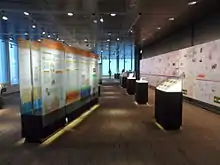 The HKMA's is headquartered in the International Finance Centre. It purchased fourteen floors in Tower 2.[10] The 55th, 56th and the 77th to 88th floors were bought for US$480 million in 2001.[11] An exhibition area, currently containing an exhibit of Hong Kong's monetary history, and a library of the Hong Kong Monetary Authority Information Centre occupy the 55th floor.[12] The 88th floor of the tower contains the office of the chief executive of the HKMA, and is served by an individual lift.