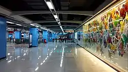 Hongling South station (Chinese: 红岭南站; pinyin: Hónglǐng Nán Zhàn) is a Metro station of Shenzhen Metro Line 9. It opened on 28 October 2016. This station is located under the southeast of the intersection of Hongling South Road and Shennan East Road.[1] The station is an indirect interchange with Line 1 and Line 2 at Grand Theater Station.[2]