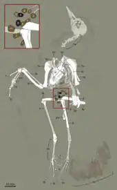 Interpretive drawing of specimen DNHM D2946, showing location of gizzard stones