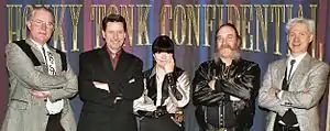 HTC formed in 1996,[1] and played its first gig at the JV's Restaurant, a Falls Church honky tonk. Since then, the band has played in most major venues in the DC area and recorded four CDs, as well as numerous compilation cuts. HTC has won many Washington Area Musicians Association (WAMA) awards, including Debut Album and Country Album for its eponymous 1999 CD (Honky Tonk Confidential). The band's second CD, Your Trailer or Mine? (2002), won Album of the Year and Country Album, and its third CD, Who Gets the Fruitcake This Year? (2006), received Wammy awards for Country Album and Song of the Year. Possibly the only song about Pee Wee Herman, "Pee Wee's Gone", is on Your Trailer or Mine?,[1] and the first country song (and likely the last) about Hanukkah is "Honky Tonk Hannukah", which can be found on Who Gets the Fruitcake This Year?. Road Kill Stew and other News contains the parody of Johnny Cash's "A Boy Named Sue", called "A Girl Named Dick".