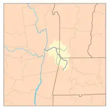 The Hoosic River, also known as the Hoosac, the Hoosick (primarily in New York) and the Hoosuck (mostly archaic), is a 76.3-mile-long (122.8 km)[4] tributary of the Hudson River in the northeastern United States. The different spellings are the result of varying transliterations of the river's original Algonquian name. It can be translated either as "the beyond place" (as in beyond, or east of, the Hudson) or as "the stony place" (perhaps because the river's stony bottom is usually exposed except in spring, or perhaps because local soils are so stony).[5]