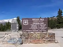 Hoosier Pass (elevation 11,542 ft (3,518 m)) is a high mountain pass in central Colorado, in the Rocky Mountains of the western United States. The name derives from Indiana, nicknamed the "Hoosier State," which was the original home of many pioneers.[2]
