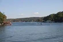 The area had been called "Brookland" in the 19th century and the lake that was expanded to become Lake Hopatcong had been known as "Great Pond" or "Brookland Pond".[21][22] During the 1830s, the name of the community had been modified to "Brooklyn", to match the spelling of the city on New York's Long Island.[23] Hopatcong was originally established as the Town of Brooklyn on April 2, 1898, from portions of Byram Township. On March 22, 1901, the Borough of Hopatcong replaced Brooklyn.[24] In 1922, residents of Byram Cove, Northwood, and other areas to the west of the original land area of the borough, voted to leave Byram Township and join Hopatcong, leaving the Borough with its current borders.[25]