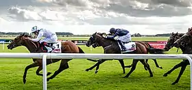 The main races in the Irish horseracing calendar are the Irish Derby, the Irish Champion Stakes, the Irish Oaks, the Irish 1,000 Guineas and the Irish 2,000 Guineas.[lower-alpha 2] The minimum prize money per race in Ireland is currently (2017) set at €9,000, with the highest average prize money per race in Europe. In 2016, the total prize money awarded was €56.8 million.[51]