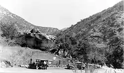 Hospital Rock was once home to 500 Potwisha Native Americans. Archaeological evidence shows settlement as early as 1350, and bedrock mortar sites and pictographs remain.[2] The Native Americans mostly used this site in the winter months. In 1860, Hale Tharp and his brother-in-law, John Swanson, were exploring the Giant Forest when Swanson sustained an injury to his leg. Swanson was transported to the locale where the injury was treated by local Indians.[4] Hale Tharp gave the spot its name after a second similar incident. In 1873, James Everton recovered from a gunshot wound at the site. He had been injured by a shotgun snare set to trap bear.[2]