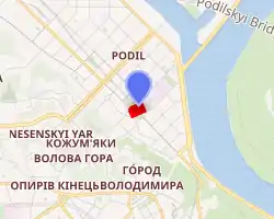 Located at the Kontraktova Ploshcha (Contract Square), in the historical neighborhood of Podil, the building is the central piece of the squares architectural ensemble, many buildings of which are also included in the Historical-Architectural Preserve "Ancient Kyiv".