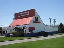 Hot 'n Now is an American fast-food restaurant based in Holt, Michigan.[1] Founded in 1984, the chain once grew to more than 150 locations throughout the United States at its peak. Subsequently, under the ownership of PepsiCo, the chain filed for bankruptcy in 2004, and was then sold to STEN Corporation. As of September 9, 2016, only the Sturgis, Michigan location remains in operation.[2] The majority of the chain's locations focused entirely on drive-thru service, featuring a small-footprint building with a tall, slanted roof style.[3] Some previous locations were more traditional fast-food locations, complete with seating, and others were combined with gas stations.[4]