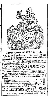 Newspaper advertisement for Hot Spring Brewery at Point of the Mountain, 1859