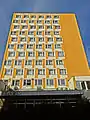 First projects to rebuild a hotel at this very location occurred in 1956, so as to mitigate the lack of rooms in Bydgoszcz after the nationalization of the hotels in 1945. Decision was made to erect a new building, under the supervision of company Miastoprojekt. The final design was approved by the City Council after 9 years of negotiation, the construction started in 1967 and was completed on August 29, 1972. On that day, at 7:00, the hotel opened its 75-seat café, at 13:00, the 150-seat restaurant, and at 16:00, the hotel reception. In addition, other services were made available, such as the hairdresser on the second floor, a PKO desk office on third floor, a bar-club, a TV room and an observation deck (on the last floor). The hotel employed at that time 240 employees, and provided all rooms with bathrooms, telephones and radios.[7]