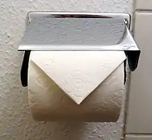 Hotel toilet paper folding is a common practice performed by hotels worldwide as a way of assuring guests that the bathroom has been cleaned.[1]