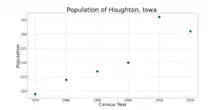 The town has more manufacturing jobs than population, which is rare—doubly rare because there are no other towns nearby to supply additional labor. There are a half-dozen plants that account for this, making plastic products, grain storage bins and ready-mix concrete.[5][6] Houghton was once the junction of two rail lines, both now abandoned, which may have something to do with the origin of its industry. Nevertheless, St. Johns Catholic Church is the most substantial building in town.[7]