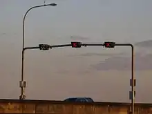 The Department of Main Roads undertook a further upgrade of the bridge's tidal flow system.[9] Commissioned in 2002 at a cost of $1.8 million, this upgrade included the replacement of the overhead arrow and cross signals with brighter, LED displays, monitoring of traffic flows and conditions with supervision of the system data and view of the bridge by CCTV at the remote Traffic Management Centre in Woolloongabba, Brisbane. Operators were for the first time also able to close and open lanes as required from the remote location.[10]