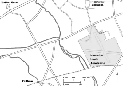 Hounslow Heath Aerodrome is not to be confused with Great West Aerodrome, which opened nearby in 1929, and which is now Heathrow Airport.