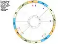The predecessor system to the Placidus, which largely replaced the Porphyry. The difference with Placidus is that the time that it takes the ascendant to reach the meridian is divided equally into three parts. The Alchabitius house system was very popular in Europe before the introduction of the Regiomontanus system.